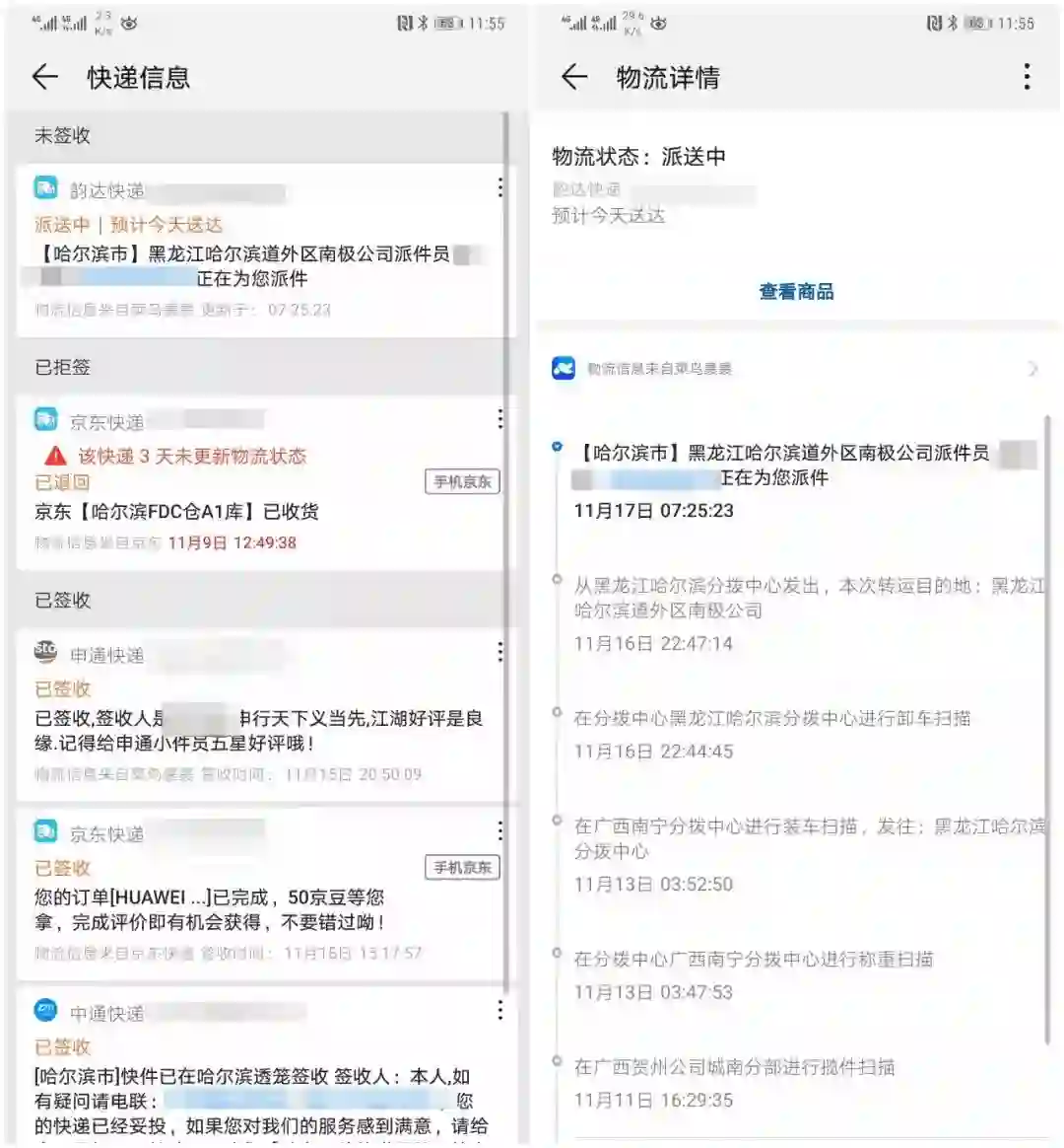 如果手机号绑定智能助手,快递组件还可以智能追踪物流,覆盖国内众多快递公司,让用户精确了解送达时间、运输路线,减少快递丢失、遗漏的可能性。