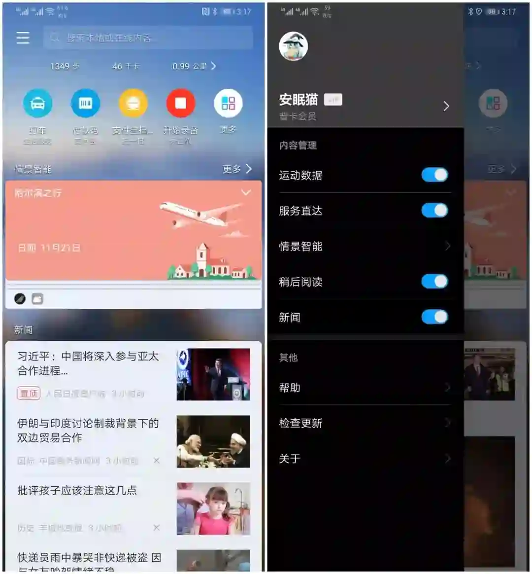 以上只是举例说明,智能助手做的事情还有更多,实际上它是一种高效的信息整合模式,用户不需要主动操作,而是由系统抓取信息,从支持场景智能的服务中决定展示的内容,去繁为简的降低用户使用的难度。