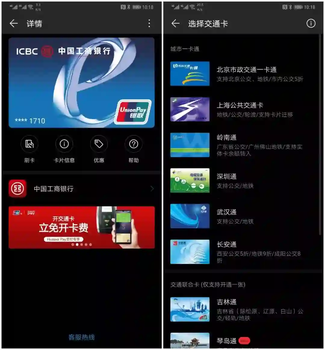 同时,Huawei Pay支持绑定国内 82 家银行的借记卡和信用卡进行刷手机消费。支持十多张公共交通卡绑定,覆盖160多个城市公交地铁刷卡;并创新推出了手机盾、碰一碰、门钥匙和会员卡等功能,覆盖移动支付、交通、出行等应用场景。