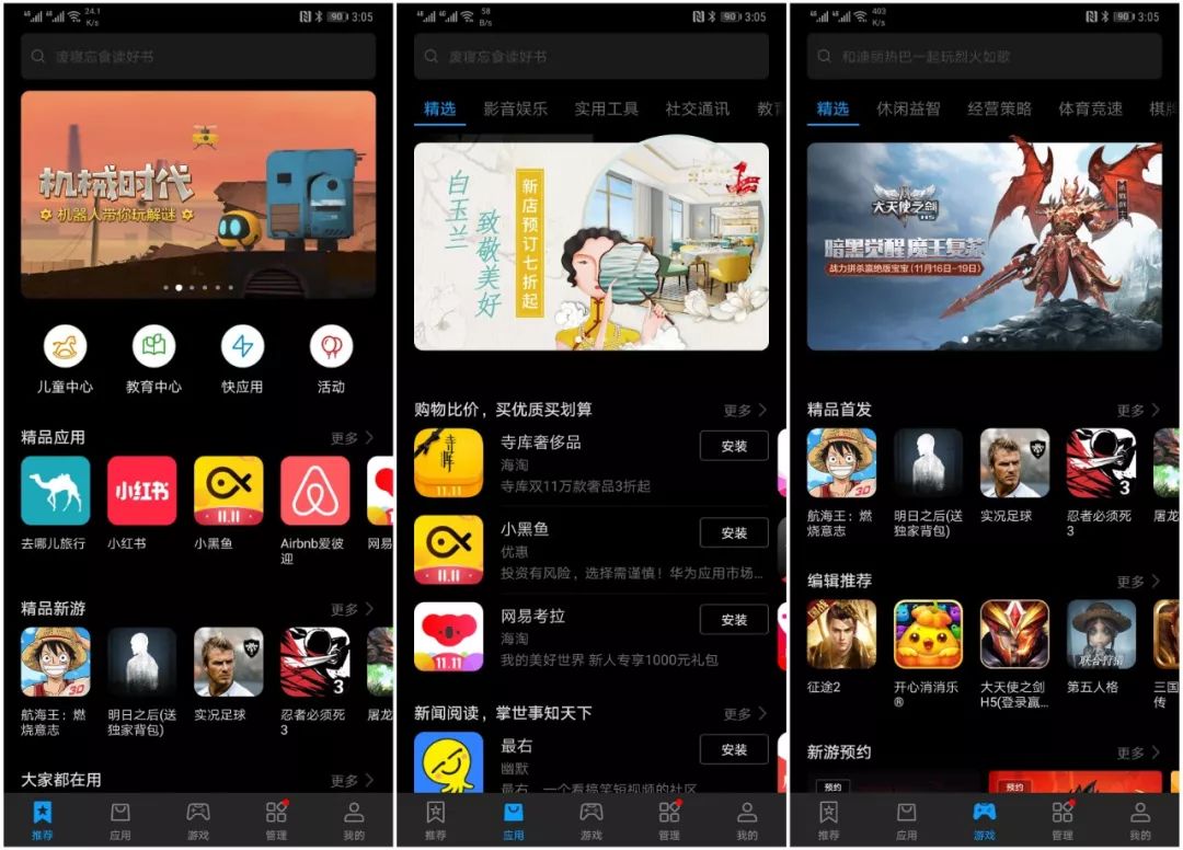 我们了解到华为应用市场推出9.0版本,在安全方面具有“开发者实名认证”、“四重检测”、“定期复检”等贯穿应用全生命周期的安全措施,基于机查和人工的双重检测,不仅标识“人工复检”“华为安全检测”,还将兼容性等问题一一列举,极大的降低用户识别的成本。