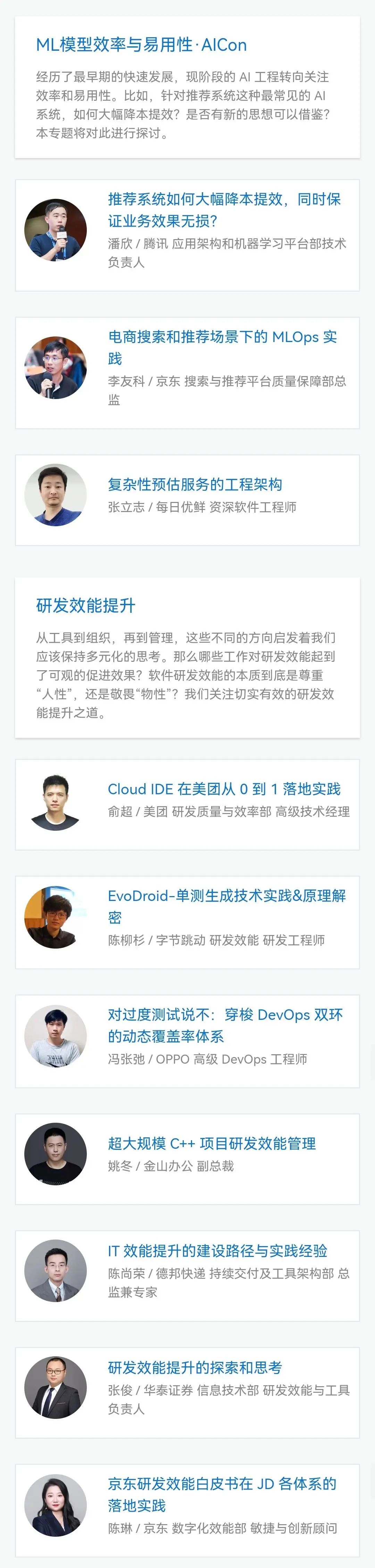 此外,我们还策划了 Rust 实战与语言实现、云原生时代的可观测最佳实践、研发效能、业务架构、云原生微服务架构新趋势、ML 模型效率与易用性、AI 基础架构等 27 个热门专题,目前已上线 80% 的内容和会议日程,点击底部【阅读原文】了解更多专题详情。