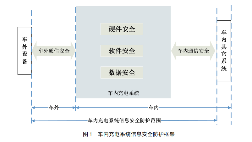 车内充电系统信息安全由硬件安全、软件安全、数据安全和通信安全四部分组成,通信安全涉及车内通信安全和车辆对外通信安全。车内充电系统的信息安全目标是通过提出硬件、软件、数据和通信等方面的安全技术要求,防护车内充电系统面临的充电数据被窃取、个人隐私泄露和车内数据被窃取等风险。