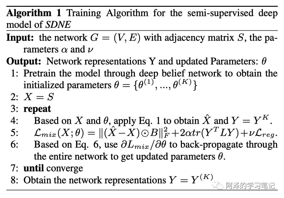 SDNE 设计了一个由多层非线形函数组成的深度模型来捕捉高度非线性的网络结构,同时联合优化 first-order 和 second-order 学习网络结构,前者用作监督信息以捕捉网络局部结构,后者用作非监督信息以捕捉网络全局结构,所以 SDNE 是一个半监督的深度学习模型。