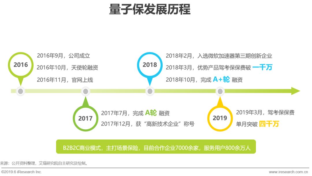 北京量子保科技有限公司于2016年9月成立,目前已完成A+轮融资,拥有全国性保险经纪资质牌照。量子保可以被定义为场景保险代运营平台,其通过线上工具和线下地推的方式,能够触达大量未被覆盖的企业保险需求,并将客户输出给保险公司。在企业端,量子保致力为1000万家中小企业提供简单可信赖的保险和服务,凭借动态保费、大数据精算、全线上流程体验等科技创新优势,帮助企业降低成本,挖掘深度价值,抵御风险。目前客户已覆盖驾培、蓝领用工、宠物、航旅、医美、教育、O2O、共享经济等多领域。