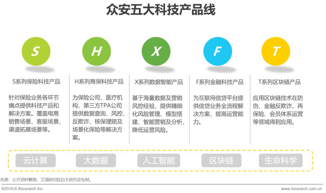 众安保险的业务不仅仅是做保险业务,科技业务同样也是重要的业务板块,众安自成立之日起便重视研发投入,在发展过程中逐渐形成保险科技产品(S)、商保科技产品(H) 、数据智能产品(X) 、金融科技产品(F)和区块链产品(T)五大保险科技产品线,并开始商业化对外输出。