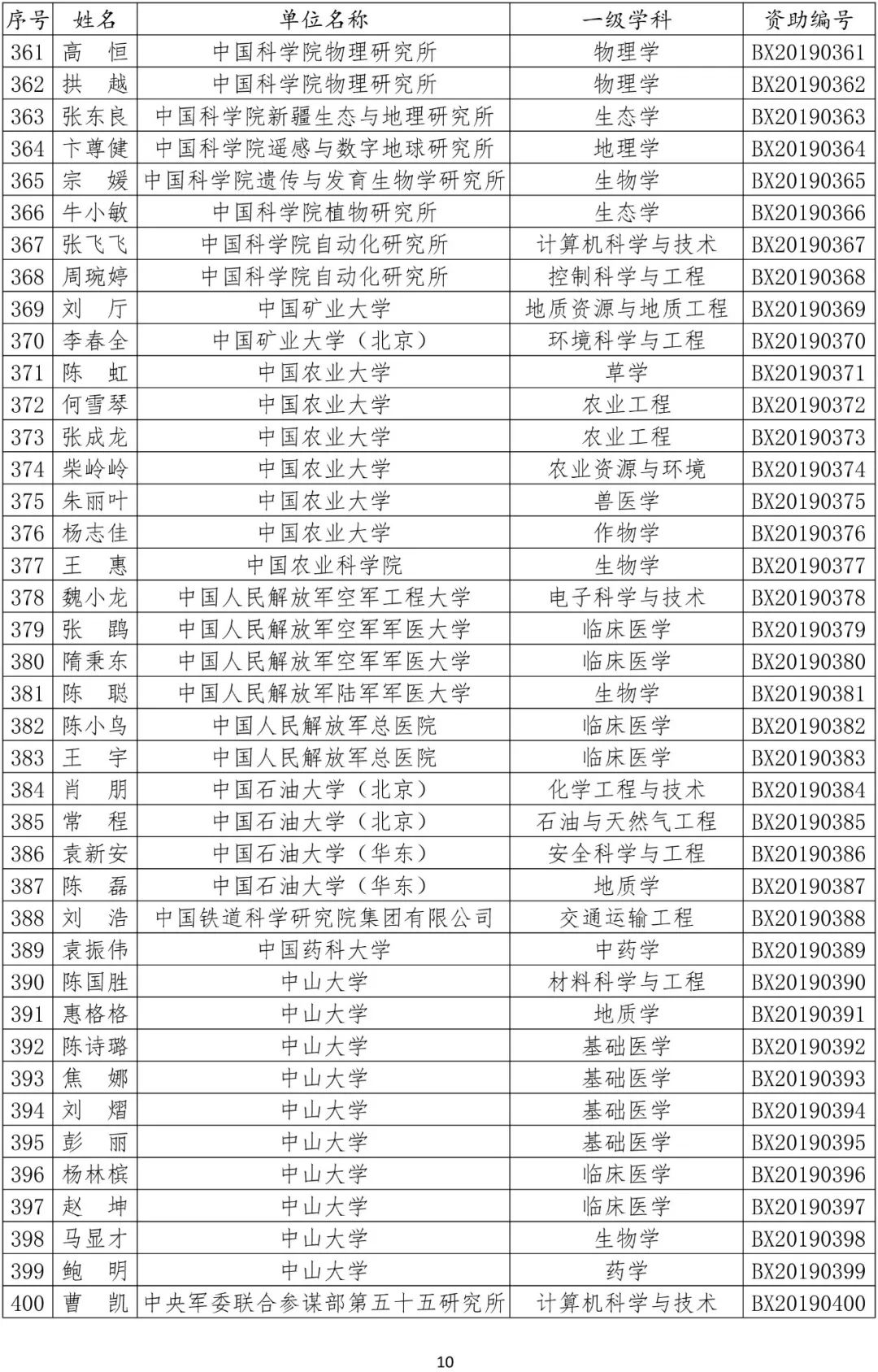根据《人力资源社会保障部 全国博士后管理委员会关于印发博士后创新人才支持计划的通知》(人社部发〔2016〕33号),全国博士后管委会办公室、中国博士后科学基金会组织开展了2019年度博士后创新人才支持计划(以下简称“博新计划”)的申报和评审工作,最终确定了400名获选人员,今天(4月18日)正式公布了名单。