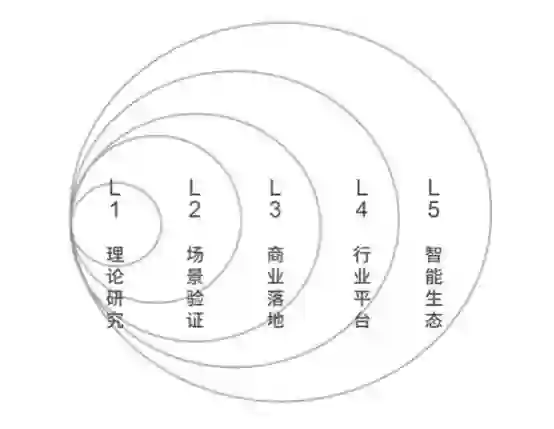 第一,理论研究;第二,场景验证;第三,商业落地,也就是市场导向;第四,平台。前面是铺垫,后面靠平台来拉动。第五,创造一个智能生态。五种融合,场景融合、市场融合,产业链融合、最后是生态融合,这是融合的五个阶段,也是五个步骤。