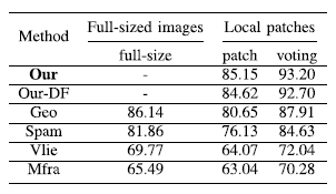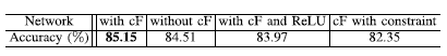 此外,我们还对 ConvFilter 层进行了四种不同的配置: (1) 两个级联卷积层;(2) 删除 convFilter 层;(3) convFilter 层之后接 ReLU 激活层;以及(4) convFilter 层中加入高通滤波器。下表2 显示了这四种配置相对应的模型性能,其中使用两个级联卷积层时模型的准确率最高。