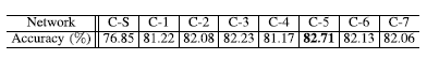 表1 模型的分类精度,其中 C 表示 CaffeNet,”C-S” 表示从头开始训练网络 CaffeNet,”C-N” 表示微调 CaffeNet 后的前 N 层网络,N 从1到7。