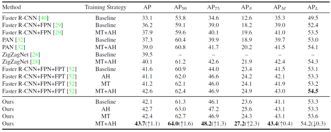 表 1 同当前最新特征金字塔算法在MS-COCO 2017 test-dev set上的比较