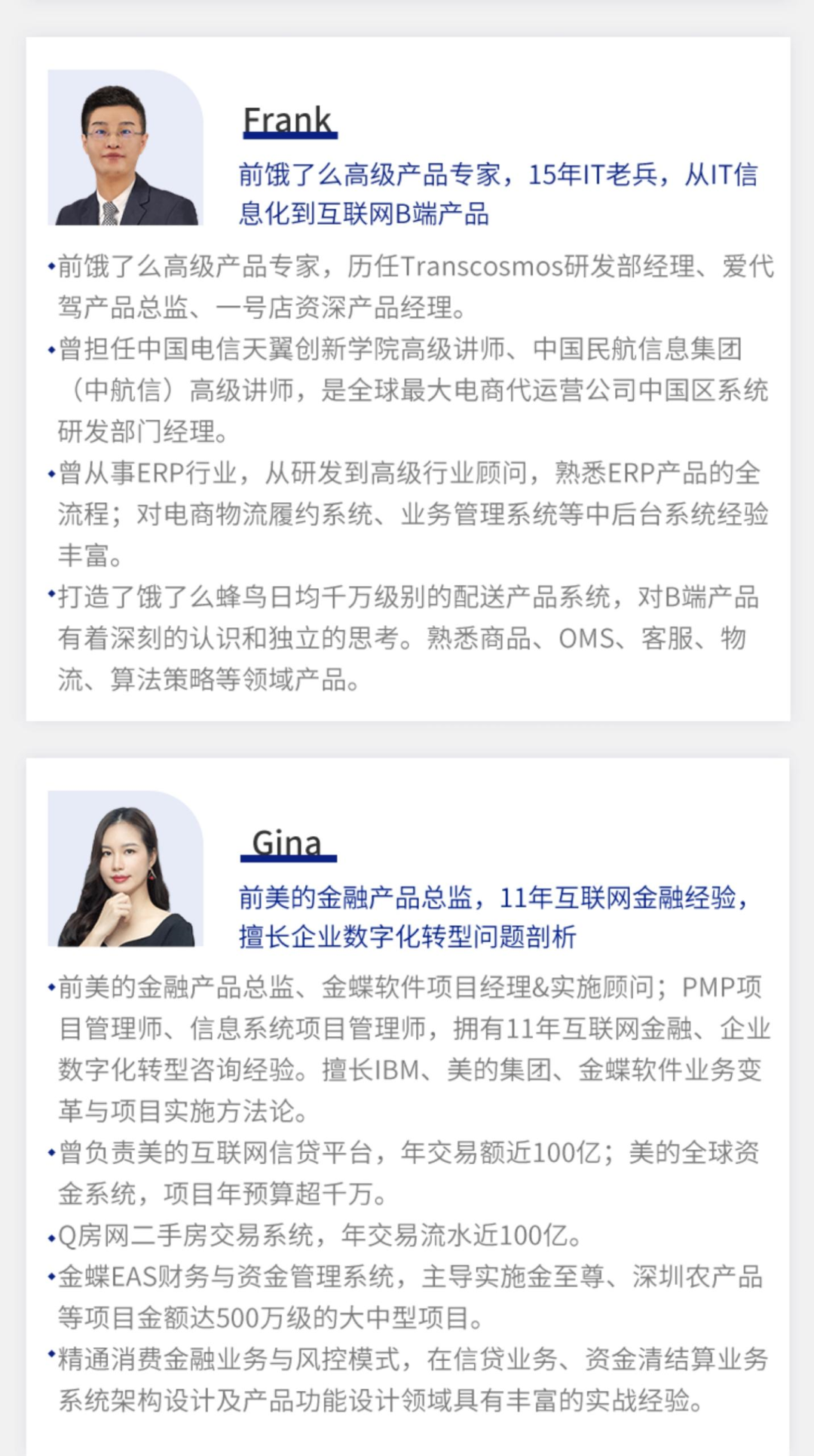 于是,我们在一线互联网公司产品专家/总监以上职位,且有操盘过丰富大体量项目的候选导师中,不断筛选、寻找最合适的人选。