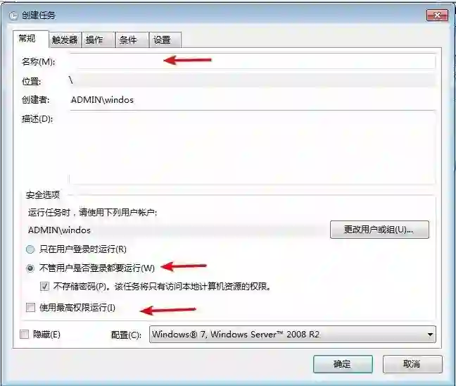选择“不管用户是否登陆都要运行”。