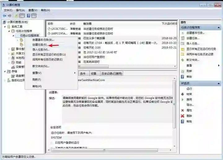 “任务计划程序”右键,选择“创建任务”。