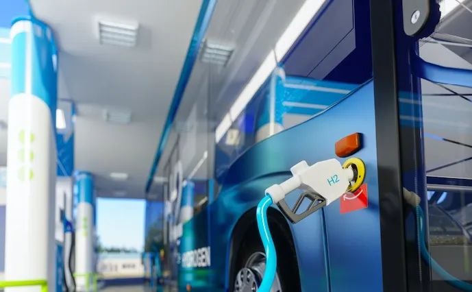 氢燃料电池车在加氢。图片来自视觉中国