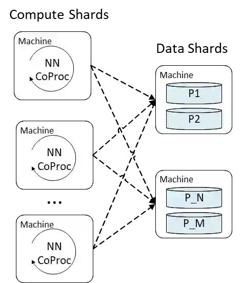 图 4:计算分片中的 ObjectStore Coproc 与数据分片通信,以检索特征嵌入并运行神经网络。数据分片存储特征嵌入表,并支持来自每个 Coproc 调用的查找请求。