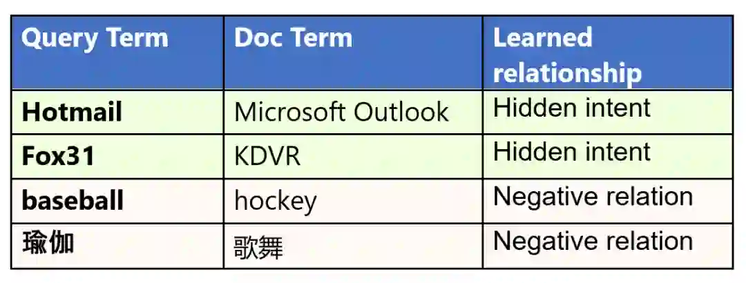 更有趣的是,MEB 可以识别单词或短语之间的负面关系,找出那些用户不希望在查询中看到的内容。例如,搜索“baseball”的用户通常不会点击谈论“hockey”的页面,即使它们都是流行的运动。类似地,用户搜索“瑜伽”的时候不会去点击包含“歌舞”的文档。理解这些负面关系有助于搜索引擎忽略不相关的搜索结果。