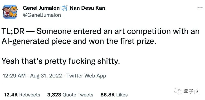 一名艺术家在推特上的“犀利”吐槽已经获得了8万+点赞,1万+转发。
