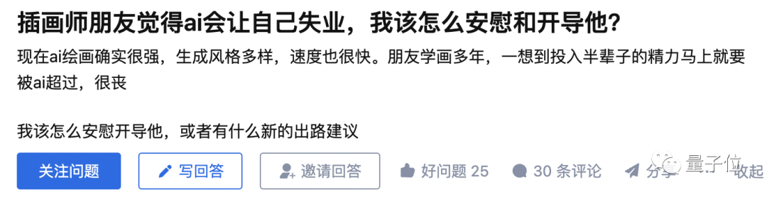 甚至在知乎上,还有这样的话题:“插画师朋友觉得AI会让自己失业,我该怎么安慰和开导他?”