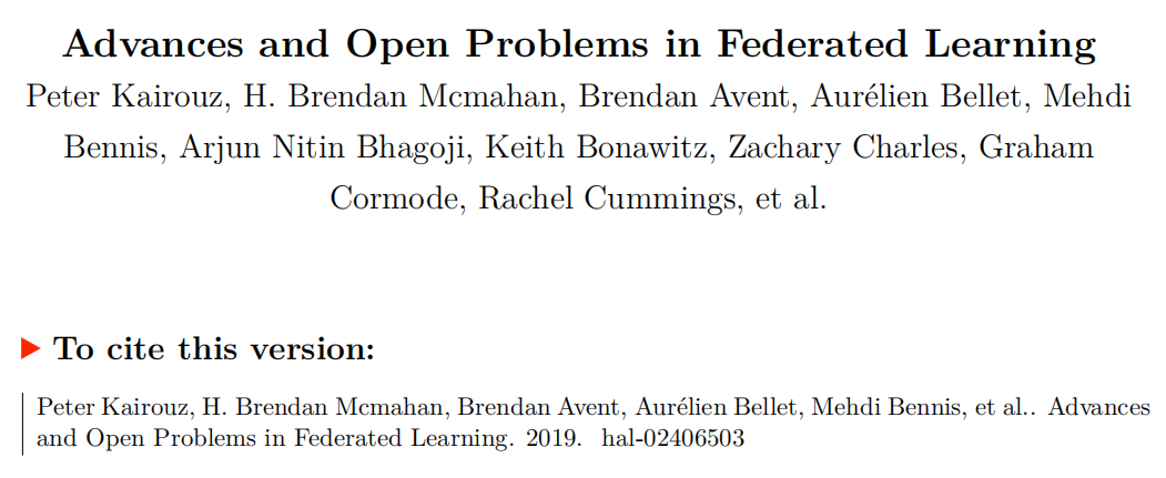 这篇综述性论文共有7个部分,从导语部分引入,介绍了跨设备设置以外的其他联邦学习设置和问题,以及如何提高联邦学习效率和效用等问题,也探讨了用户数据以及隐私、模型被操控和失败的因素等热点问题。