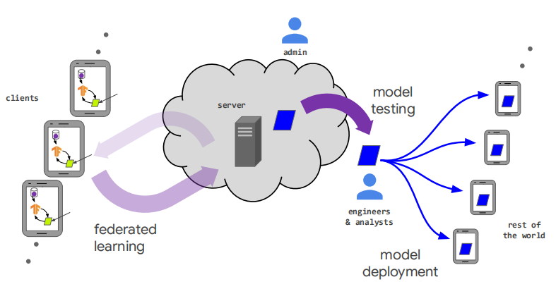 联邦学习使分布式客户端设备能够协作学习并共享预测模型,同时将所有训练数据保存在设备上,从而将机器学习的能力与将数据存储在云中的需求分离开来。