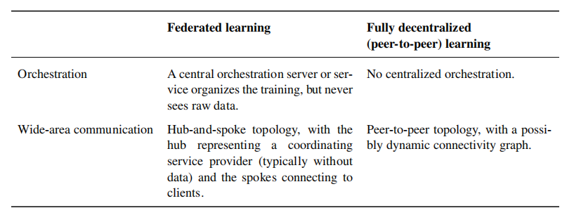 值得注意的是,这个定义完全将联邦学习与完全去中心化的学习技术做了区分。