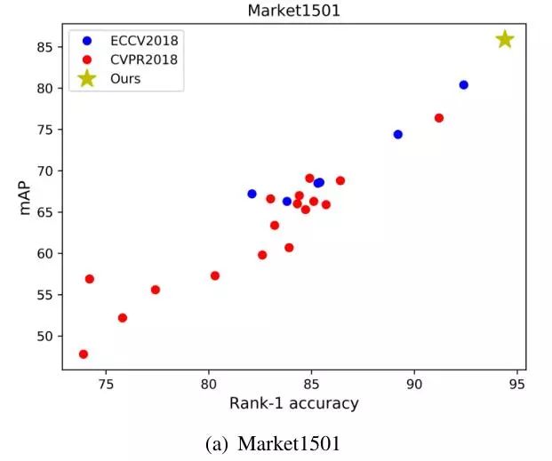 首先作者在Maket1501数据集上对比了ECCV2018和CVPR2018的一些baseline的性能,并与自己提出的baseline作对比,这些baseline大部分都是通过一些训练技巧来提升的,由于在论文中轻描淡写易被忽视,因此作者也建议评价一篇学术论文一定要把训练技巧考虑在内,这样才会更加客观。