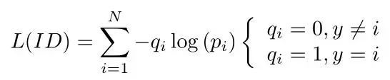这也是从分类问题借鉴的一种trick,假设我们网络最后的分类为N,也就是ID的数量。且y为真实的ID标签,而pi为预测的ID分类。则其交叉熵损失为: