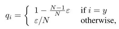 我们在这篇文章中把最后的分类loss叫做ID loss,上面为最常用的Softmaxloss,但是由于标签的形式为One-hot编码的形式,也就是qi只有0和1两个取值,当我们使用Softmax loss进行优化时,模型会不断的优化使得pi为1,但却非常容易造成过拟合。因此label smoothing的思想是对真实标签进行改造,使其不再是One-hot编码。