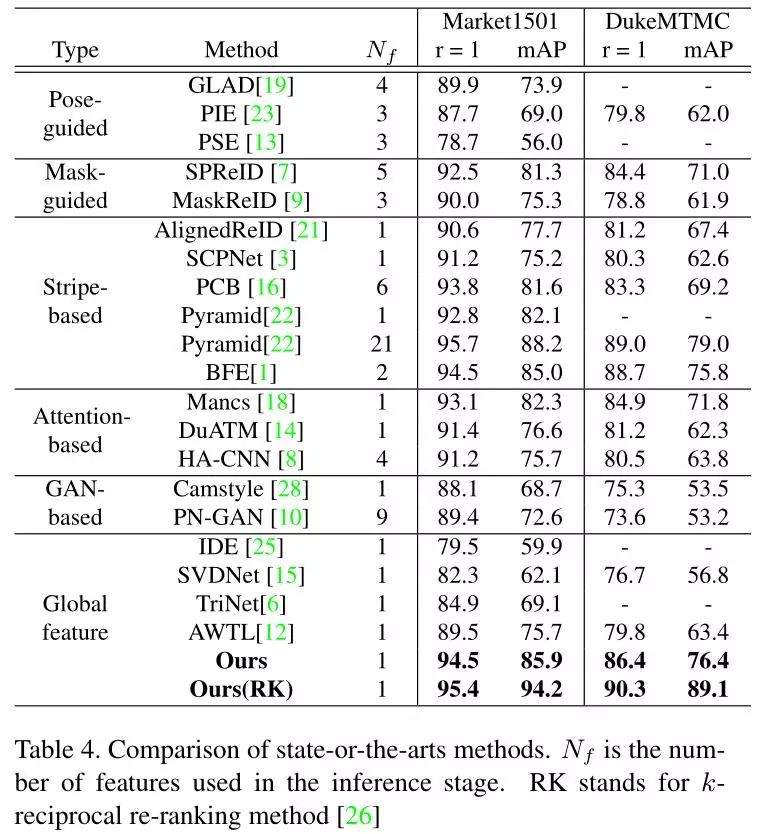 为了展示其鲁棒性,作者又在不同的数据域上进行测试,即使用Market1501训练好的模型在DukeMTMC数据集上验证,得到了如下结果: