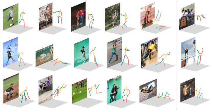 图3为应用我们的模型在不同场景图片中的效果。可以看到,该模型可成功泛化至背景丰富且动作较复杂的未曾见过的场景中。
