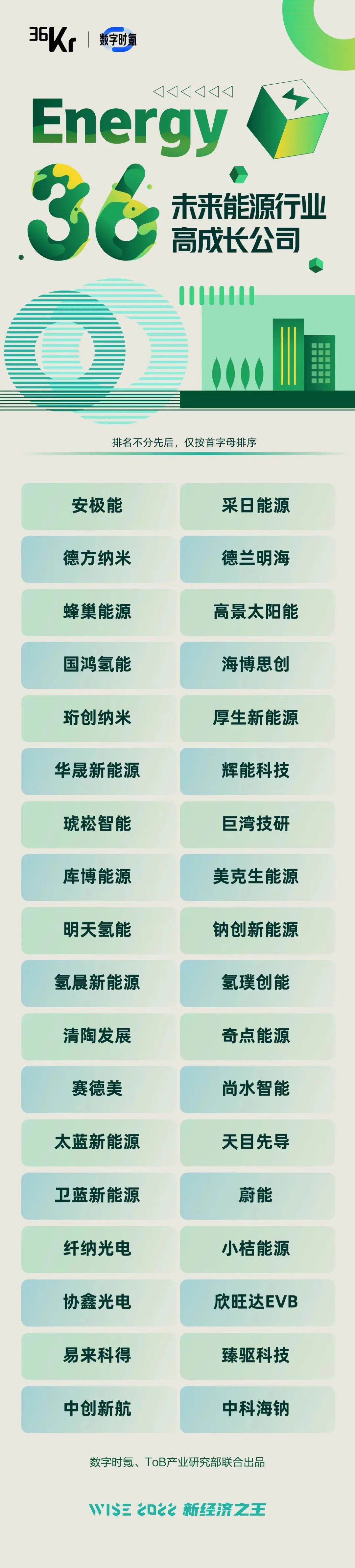 36氪期待新能源高成长企业们都能以技术创新为舟,驶向未来能源体系的星辰大海。
