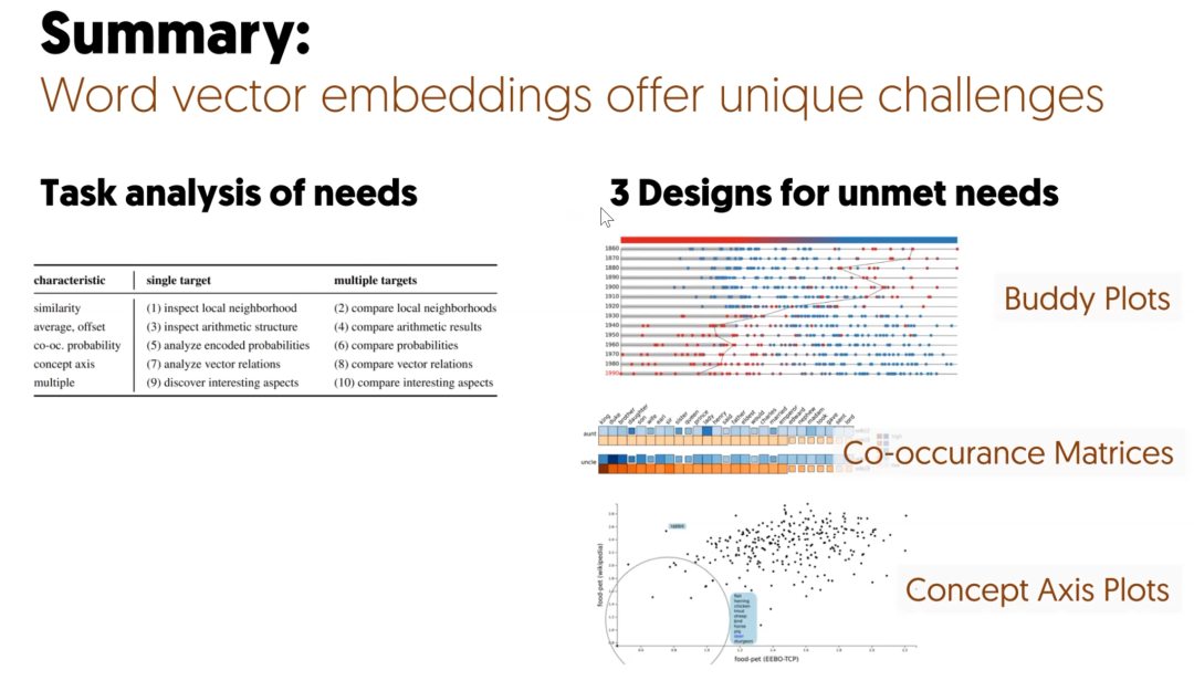 图 2 词向量嵌入的独特挑战以及Gleicher教授创建的对应可视化设计