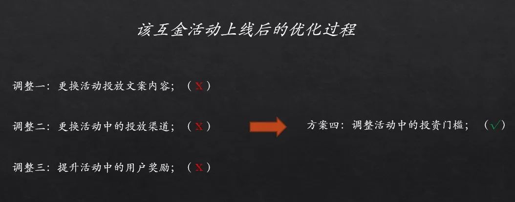 起初,此种提升奖励的做法,的确较大幅度地提升了新用户的累计投资额,但亮眼的数据难以长期持续,仅当逐级加码活动福利后,才能进一步提升。