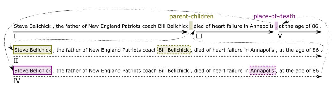 通过将任务分解成两个 RL 过程的层次结构,该模型有利于处理对于同一实体对具有多种关系类型的句子,或者一个实体涉及多种关系的情况。过程如图: