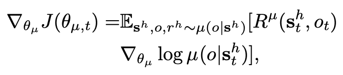 可以一同优化 High-level 和 Low-level 两段策略,High-level 的梯度是:
