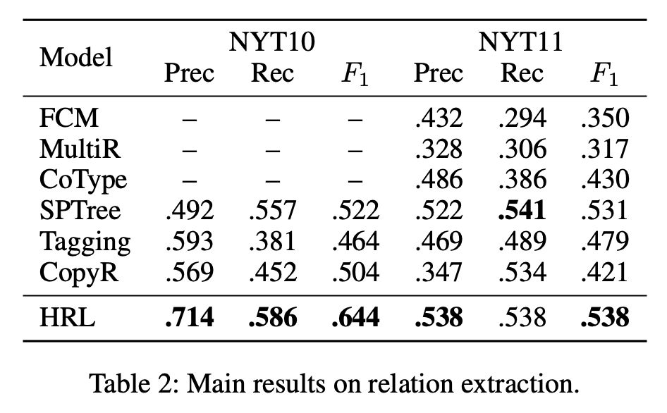 本文是清华大学发表在 AAAI 2019 上的一篇关系抽取方向的文章。作者开创性地提出了使用层次强化学习做关系抽取的方法,在不同数据集上和现有方法相比都有提高。