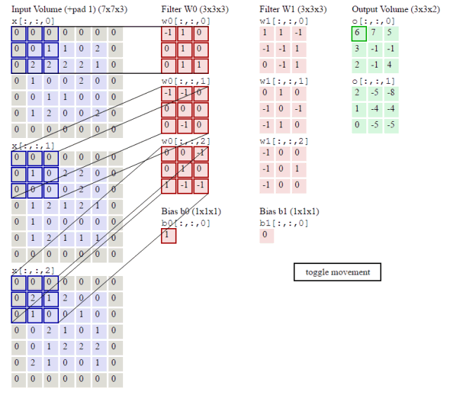 下面的动图清楚地展示了如何进行卷积操作(其实就是简单的点乘运算):