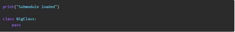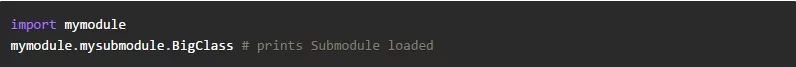 注意,尽管我们在本例中导入了mymodule,但是包含BigClass的子模块直到我们调用它时才进行加载。