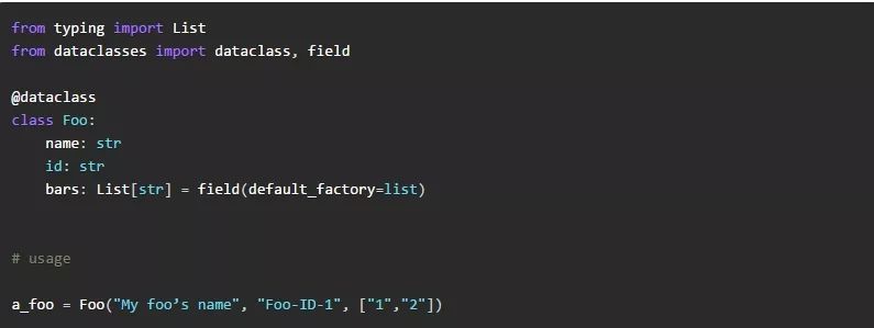 使用Python 3.7,你现在能够使用一个被称为@dataclass的装饰器,它会自动在你向类变量添加类型注解时为你添加一个隐式的__init__函数,这都得归功于PEP-557。当该装饰器被添加后,Python会自动检查相关类的属性和类型注解,并生成一个带有指定参数顺序的__init__函数。