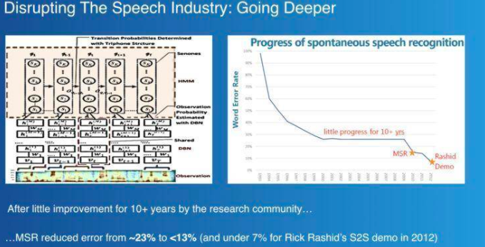 有了这些成果作为基础,2010 年,邓力带领他的微软团队进行了大规模的实验,终于「守得云开见月明」,实现了深度神经网络在工业界的大型语音识别上的革命性突破,也让这个「2010 年」成为中国的语音领域的一个重要年份。
