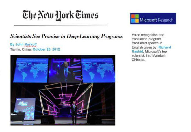 这一年,邓力和其团队成员俞栋探索用深度神经网络来改善大词汇语音识别的项目,并一同提出使用深层神经网络对一种比音素小很多、叫做 senones 的建模单元直接建模的方法。