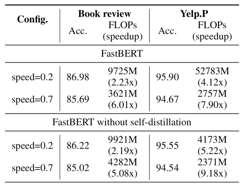 [2] FastBERT: a Self-distilling BERT with Adaptive Inference Time: https://arxiv.org/abs/2004.02178
