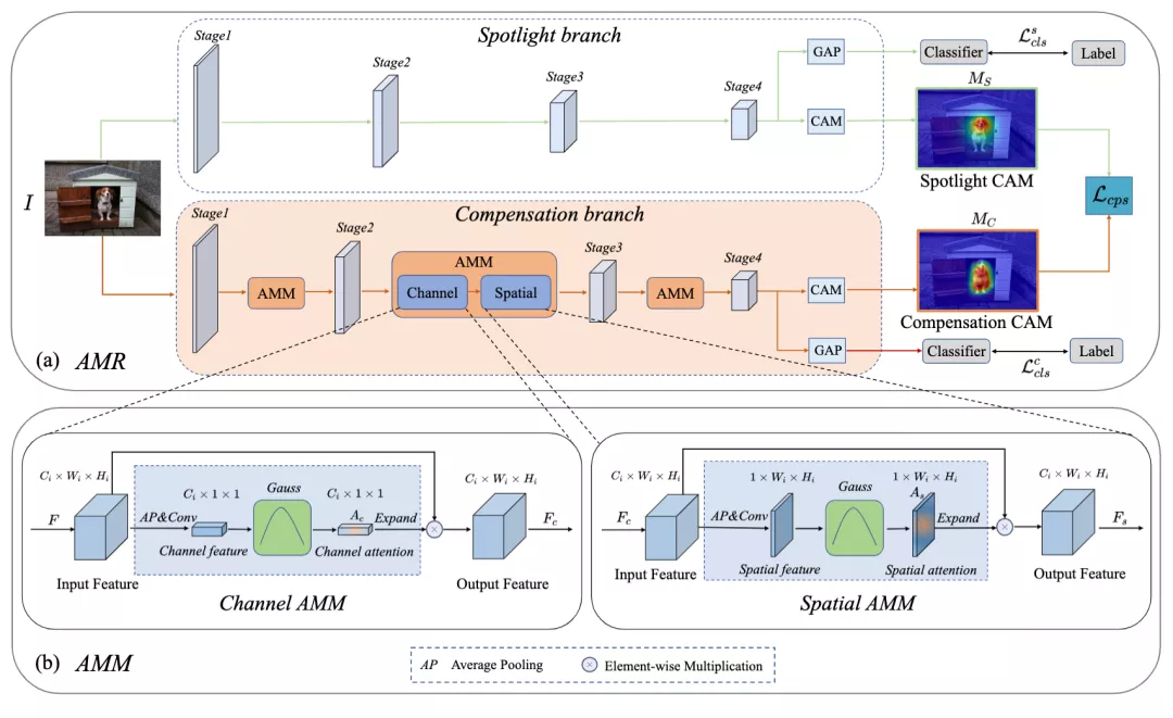 为了解决上述问题,字节跳动 - 智能创作团队提出了一种即插即用的激活值调制和重校准(AMR)模块来生成面向分割任务的 CAM,大量的实验表明,AMR 不仅在 PASCAL VOC 2012 数据集上获得最先进的性能。实验表明,AMR 是即插即用的,可以作为其他先进方法的子模块来提高性能。论文已入选机器学习顶级论文 AAAI2022,相关代码即将开源。
