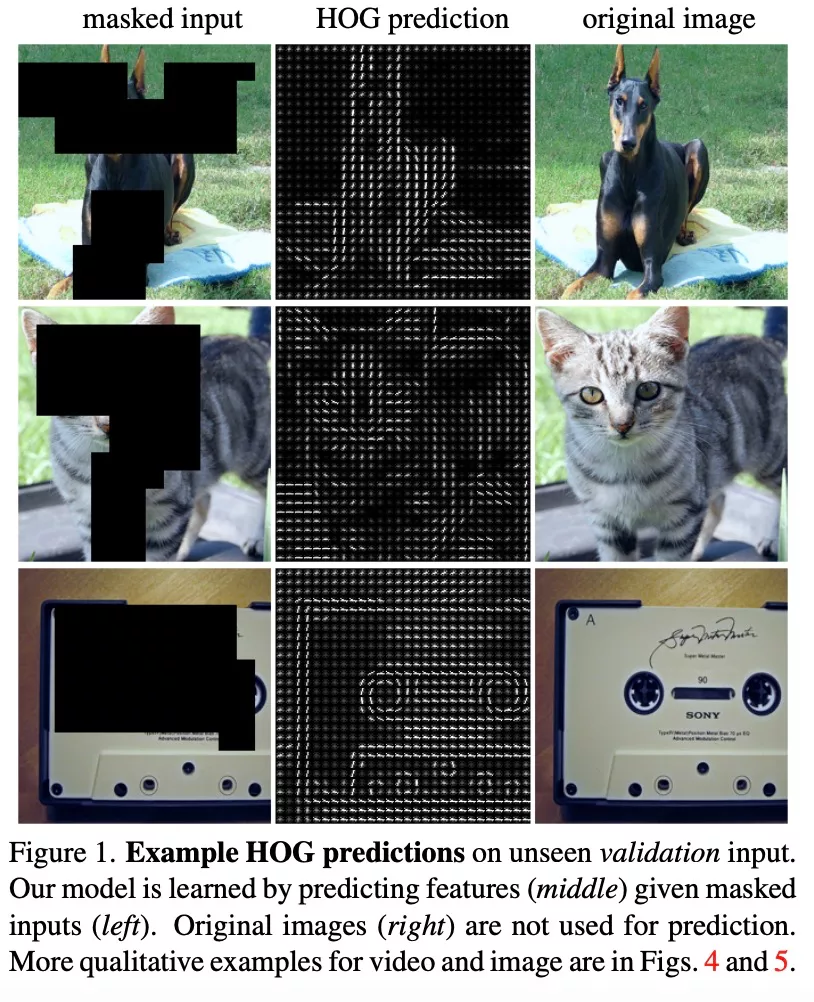 比 MAE 更强,FAIR 新方法 MaskFeat 用 HOG 刷新多个 SOTA。