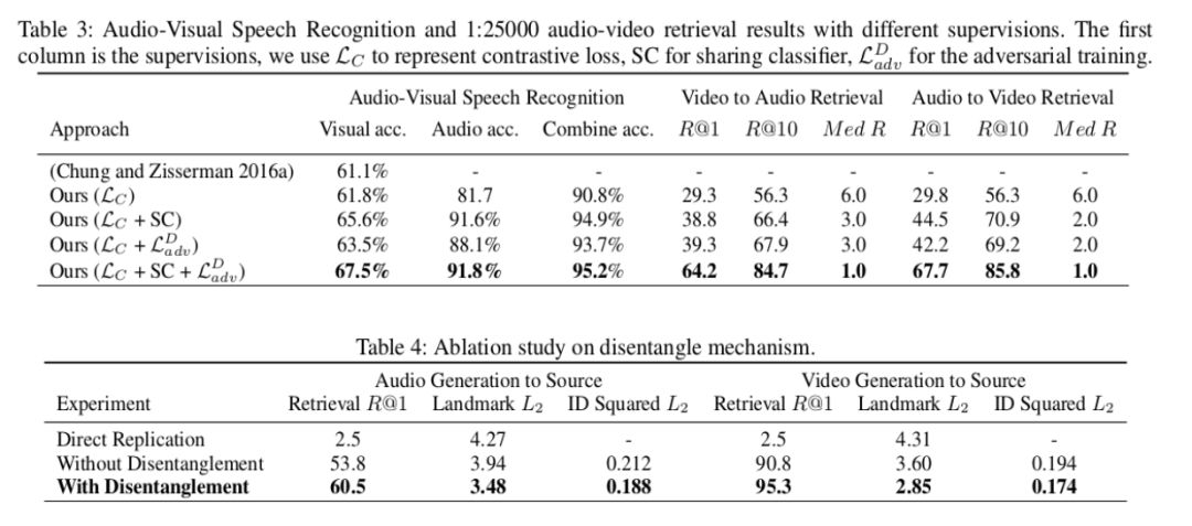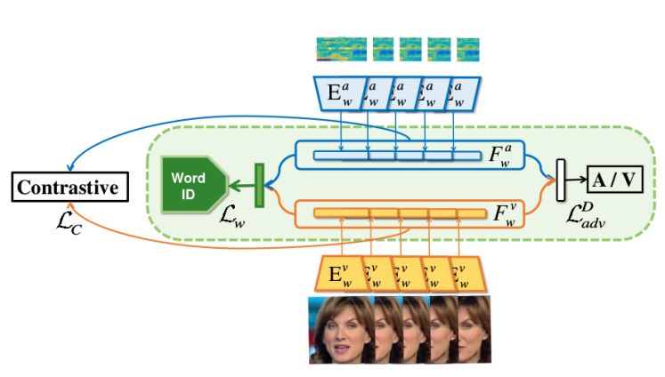 其核心思想在于使用联合视觉的语音识别(Audio-Visual Speech Recognition)(带音频的唇语识别)任务进行空间的编码和解离。包含说话人脸视频,音频和所说词语标签的唇语识别数据集天然的目标,由此文章提出了一种“协同与对抗(associate-and-adversarial)”的训练方式。