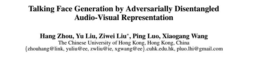 香港中文大学 MMLab 提出通过解离的听觉和视觉信息进行说话人脸视频的生成,使得生成高分辨率且逼真的说话视频成为可能,而系统的输入可以仅仅是一张照片和一段任何人说话的语音,无需先对人脸形状建模。