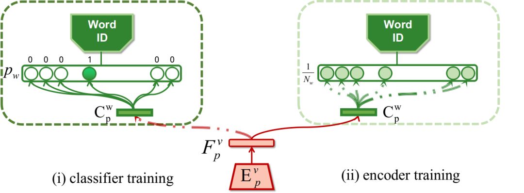 ,映射到其对用的词标签上。这一步骤的意义在于尽可能的将已编码的身份特征中的语言信息提取出来。然后第二步保持分类器的权重不变,训练编码器