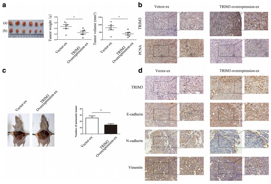 TRIM家族蛋白是RING型E3泛素连接酶的亚家族之一,被认为是肿瘤过程的关键调节因子。该蛋白质在多种生物过程中发挥重要作用,如细胞增殖、细胞分化、DNA修复,转录调控和细胞凋亡。TRIM3是TRIM蛋白家族的成员,其定位于染色体11p15.5。据报道,TRIM3基因的缺失促进了胶质母细胞瘤的发展和进展,而过表达降低了胶质母细胞瘤的致瘤性。 TRM3在GBM中的肿瘤抑制功能可能与其对p21的调节有关。据报道TRIM3在胶质瘤细胞中低表达。然而,TRIM3在胃癌中的作用尚未得到证明。