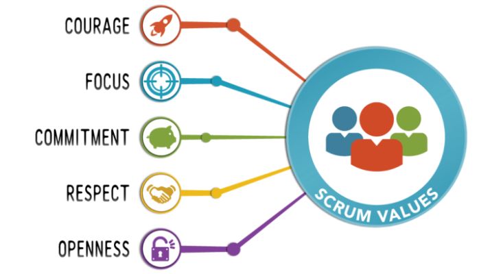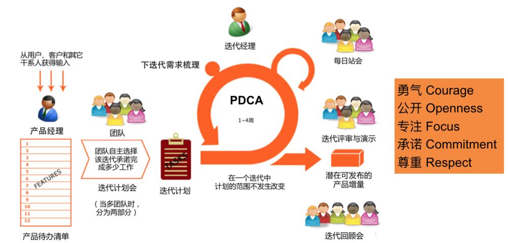 为了让Scrum团队能够高效运作,大家需要对目标承诺,有专注精神、接受挑战的勇气和开诚布公的心态。在分享的同时互相帮助、互相尊重。