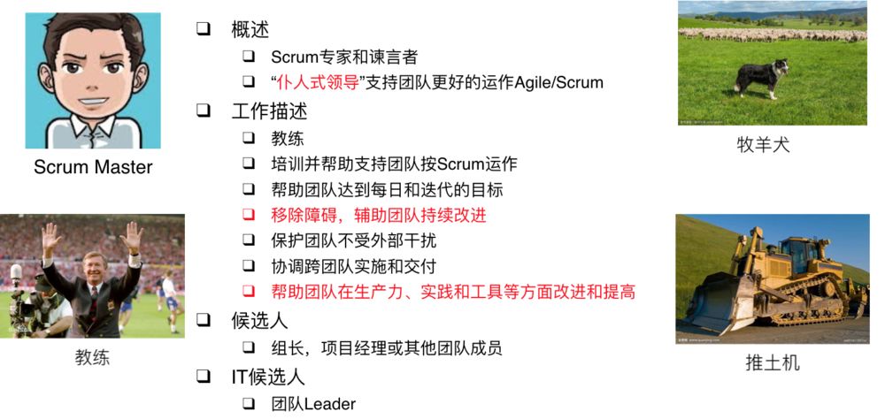 Product Owner:主要负责确定产品的功能和达到要求的标准,指定软件的发布日期和交付的内容,同时有权力接受或拒绝开发团队的工作成果。 作为产品负责人,PO清楚地知道产品的愿景,需要对产品待办列表的梳理、优化、优先级排序等负责。PO决定Why和What,一般可以对应为我们理解的产品经理和业务分析师的角色。